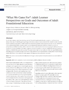 In a national survey of 793 adult learners participating in Adult Foundational Education (AFE) programs across the United States, researchers set out with a goal to understand why individuals enroll in adult education programs, what outcomes they experience, and how these findings can inform a future learner-centered return on investment (ROI) study.